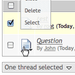 2. Die zweite Möglichkeit ist die Massenbearbeitung. Hierfür markierst du zunächst über die Checkboxen () die gewünschten Themen oder Beiträge. Wenn du beispielsweise fünf Themen markiert hast, findest du am Seitenende einen Button mit der Aufschrift »5 Themen markiert« und ebenfalls einen Pfeil. Mit einem Klick auf diesen Button öffnest du das Menü zur Bearbeitung aller markierten Themen. Gleiches gilt natürlich für die Beiträge.